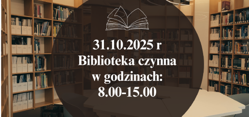 W dniu 31.10.2025 r. (piątek) Biblioteka czynna w godzinach 8.00-15.00.